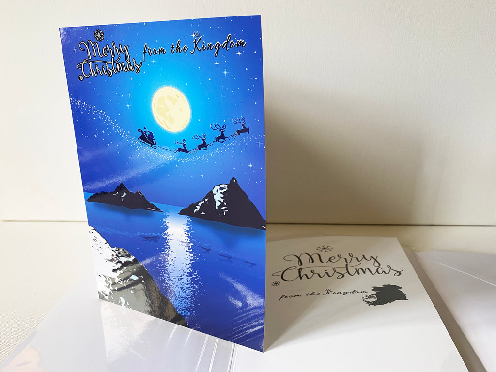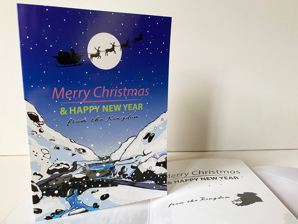 With that in mind I designed 3 Christmas Cards, depicting 3 of the Kingdoms great scenes in a Christmas setting. I could have chosen any number of inspirations (and will hopefully get to a few more in the future) but decided to start with the Gap of Dunloe, a view of the Selling Islands from Kerry, and the iconic cross at the highest mountain in Ireland, Carrauntoohil..